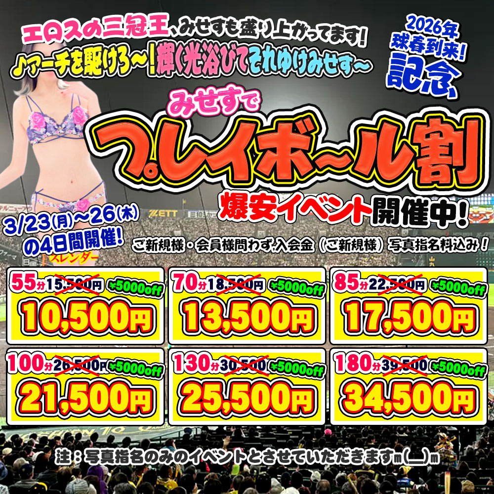 みせすスプリングダイブ 第5弾! 27日開幕! 今年もḾLBよりNPBがアツい! エロスの三冠王、みせすも盛り上がってます! ♪アーチを駆けろ~!輝く光浴びて、それゆけみせす~ 2026年球春到来!記 …続きを見る