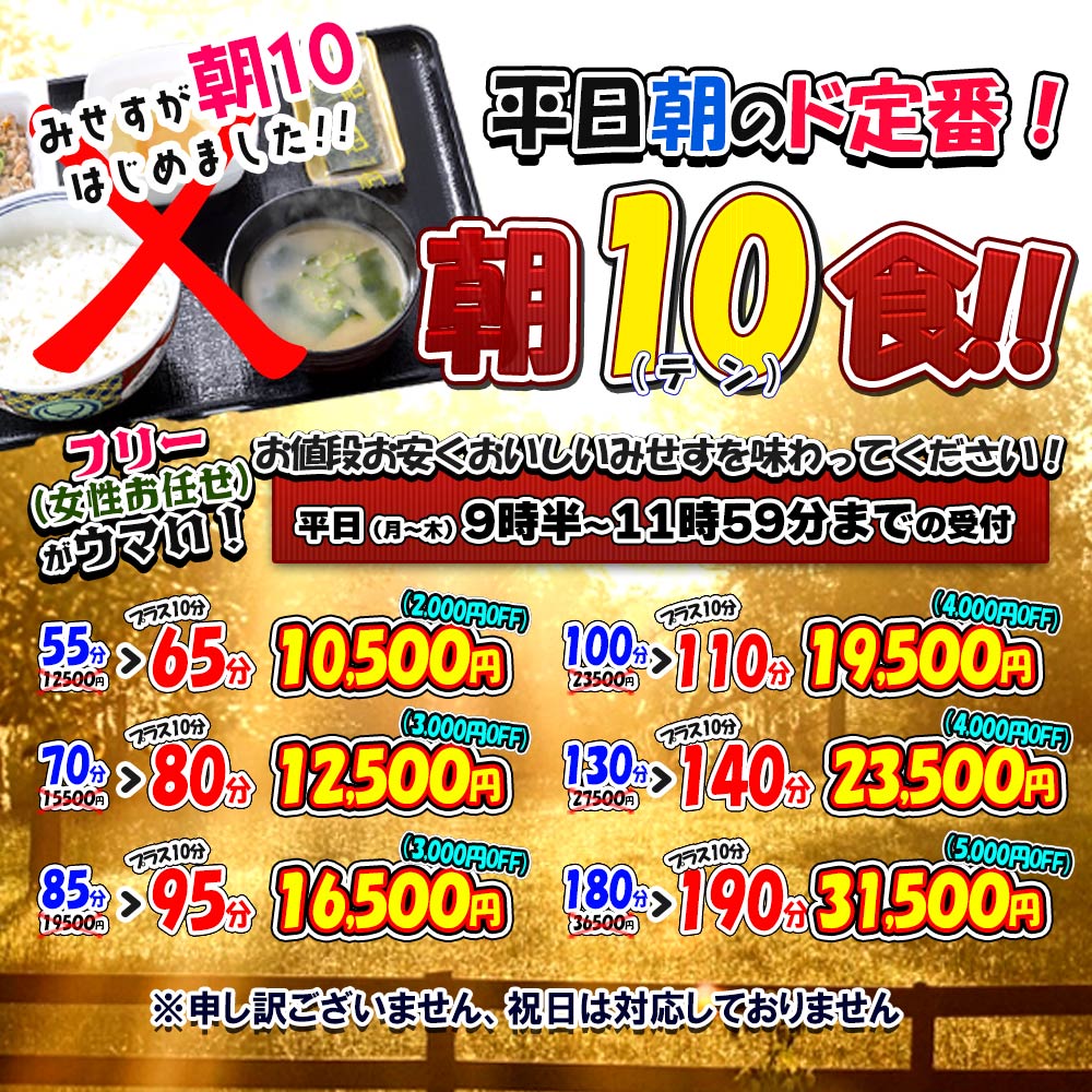 朝の元気はみせすが一番!10分延長つきのおいしいフリー割引でお腹いっぱいになってください!