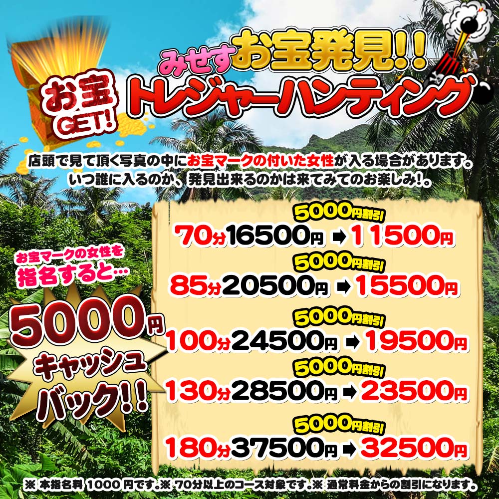 2ヶ月に1回あるか・ないかの不定期開催!本指名も同じお値段でどうぞ!鬼爆安です! これがみせすのお祭りじゃい!