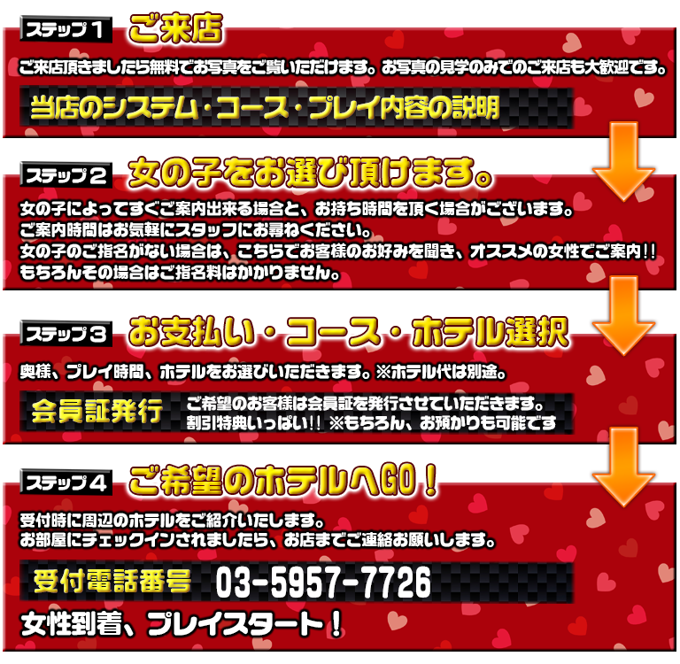 ただし、女性の急な欠勤等によりご案内できなくなったり、ご案内時間が遅れてしまったりする場合がございます。